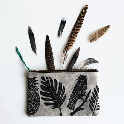 A few weeks ago, while falling into the black hole that is the tinterweb, I came across the work of French artist Amelie Mancini who's based in Brooklyn, NY. It happens she has a new collection called "Tropical", what a sweet coincidence! I totally fell in love with her work, she is like a Swiss Army knife literally! She masters woodwork, painting, stamping, textile pattern, etc... She is most definitely awesome!