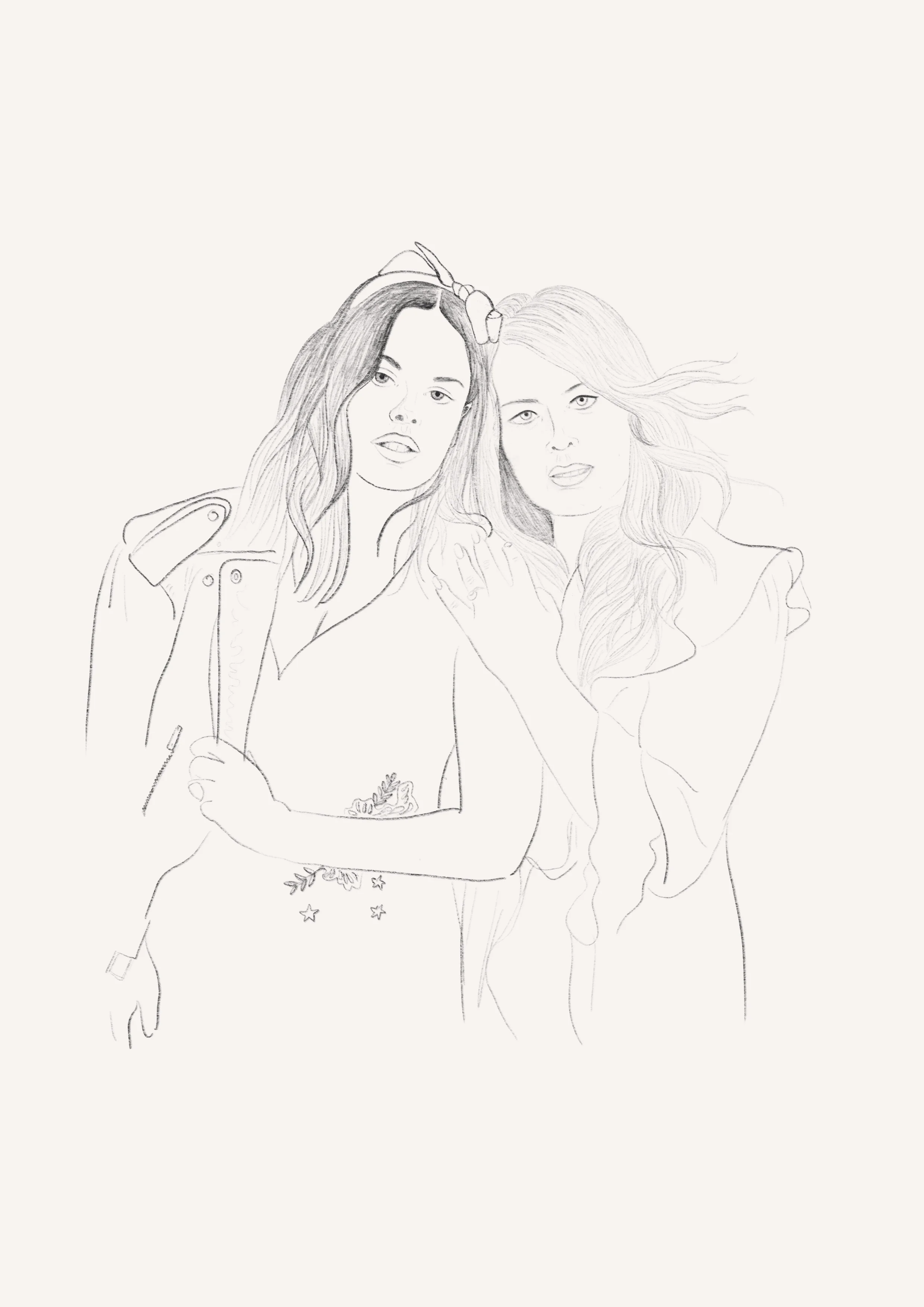 Editorial illustration for the second issue of Mother Muse of Amanda De Cadenet and her daughter Atlanta de Cadenet Taylor.